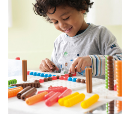 3.用鏡柱對準彩豆,卡住後可拔除彩豆,訓練幼兒手部肌力。